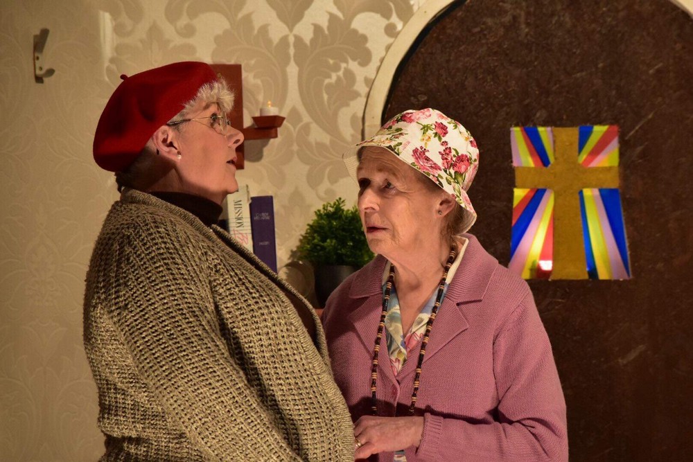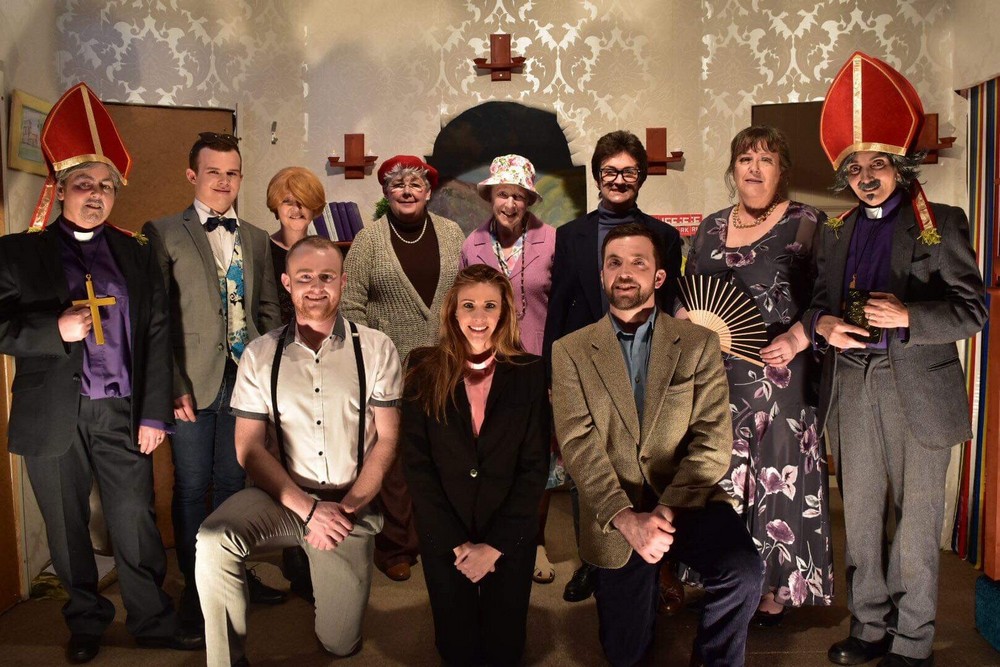 Last year’s play Don’t get your vicars in a twist by Ann Gawthorpe and Lesley Brown was a fast-moving farce full of fun, frolics and lots of doors. Eleven actors and a first class support team rose to a steep dramatic challenge under the skilled direction for the second time of Hazel Cruickshanks. All three performances were sold out and even a power cut whilst the audience awaited the last show did not distract the actors or deter their spirits.